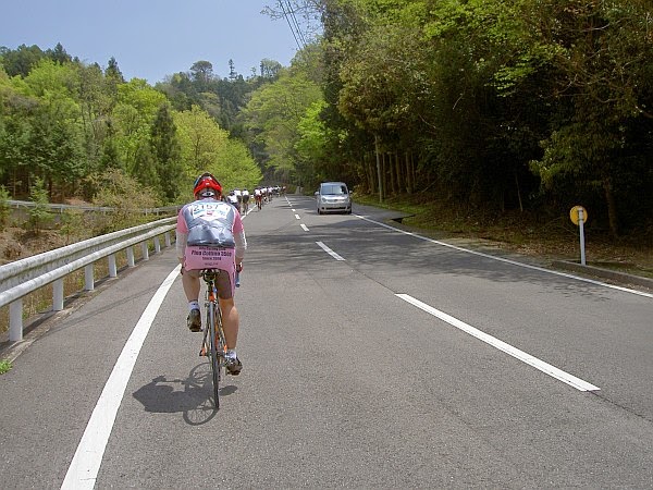 なんとか峠をこなして下り坂へ。いたるところで落車やパンクが見られる。明日は我が身。