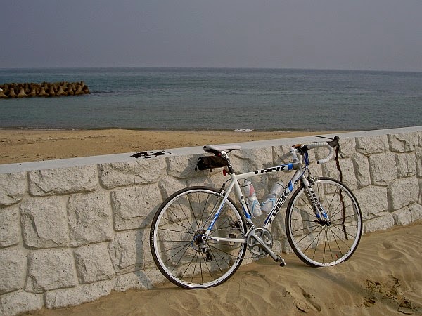鐘崎からの海岸沿いは強烈な向かい風。一部でペースが上がったのでついていく。向かい風は強いけれど天気がよく気持ちがよい。